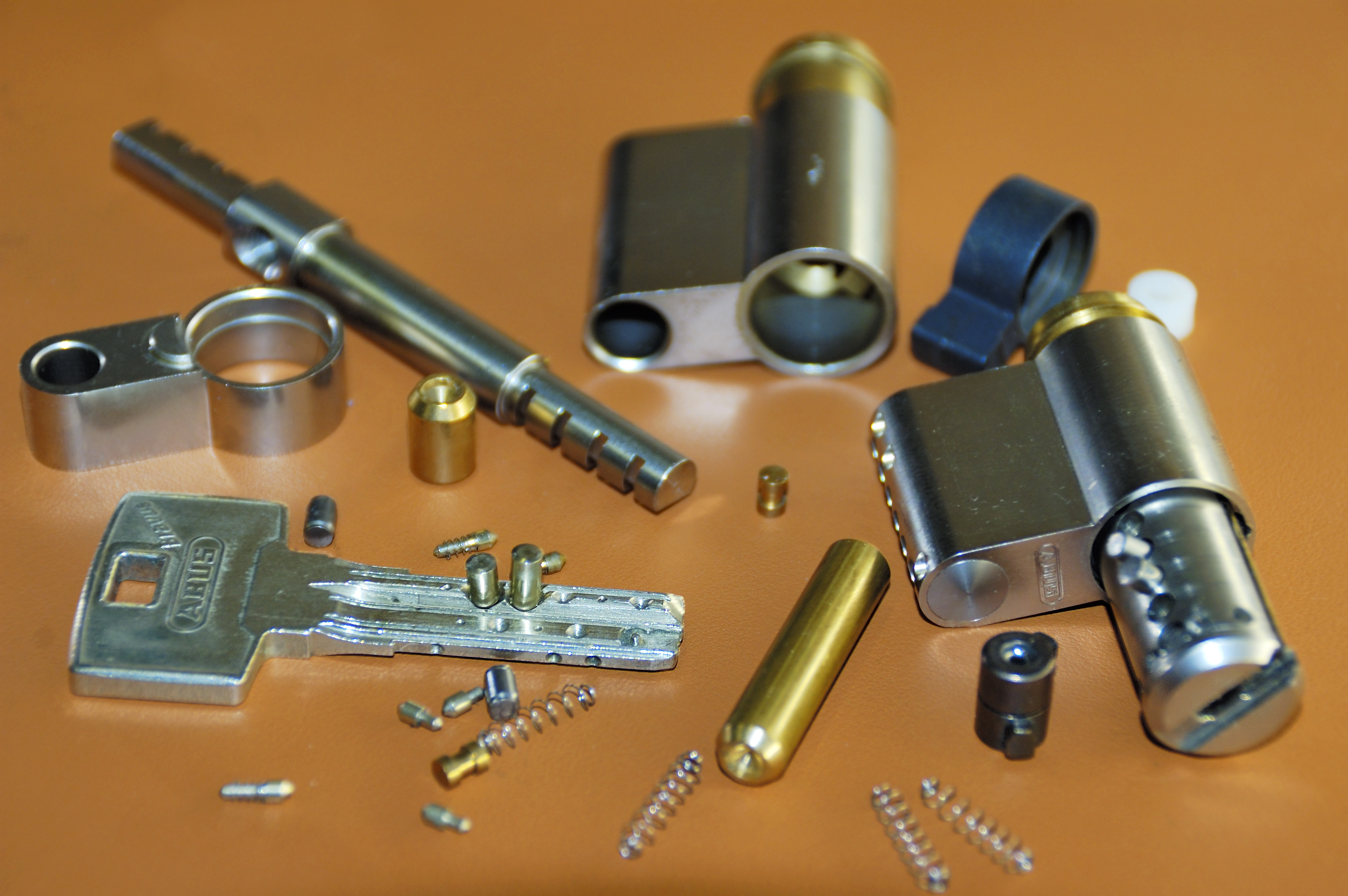 Schlüssel Bohrmuldenschlüssel mit Profilzylinder werden oft bei Schließanlagensystem in modernen Wohnanlagen, Gewerberäumen sowie in öffentlichen Verwaltungsgebäuden eingesetzt. Durch die Bohrmulden wird die Sicherheit deutlich erhöht. Bei einem Bohrmuldenschlüssel werden die Zuhaltungsstifte durch Aussparungen im Schlüssel in die Position gebracht, die es erlaubt, den Zylinderkern mit dem Schlüssel zu drehen. Über die Schließnase wird die Bewegung auf das Schloss übertragen. Dadurch wird der Riegel bzw. die Falle des Schlosses bewegt und die Tür wird versperrt oder geöffnet.