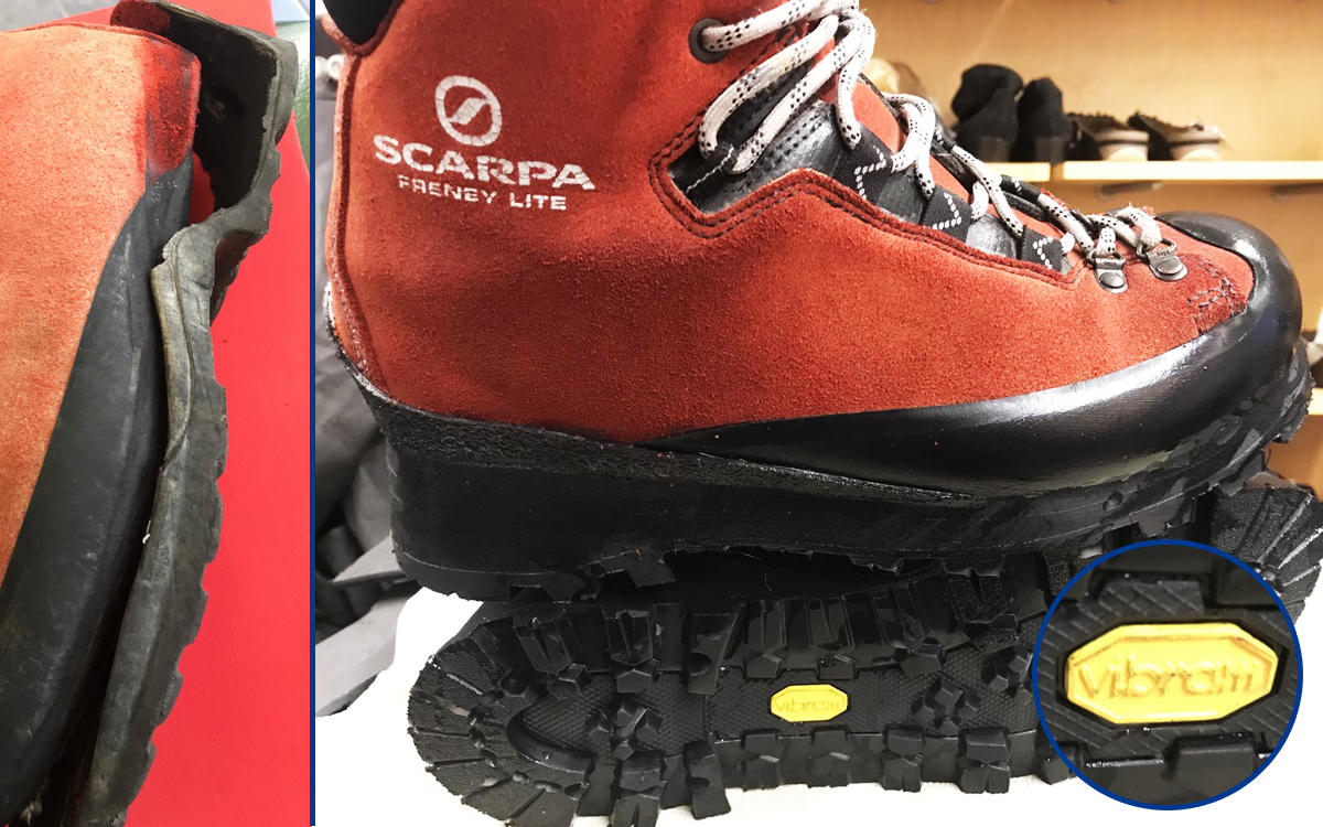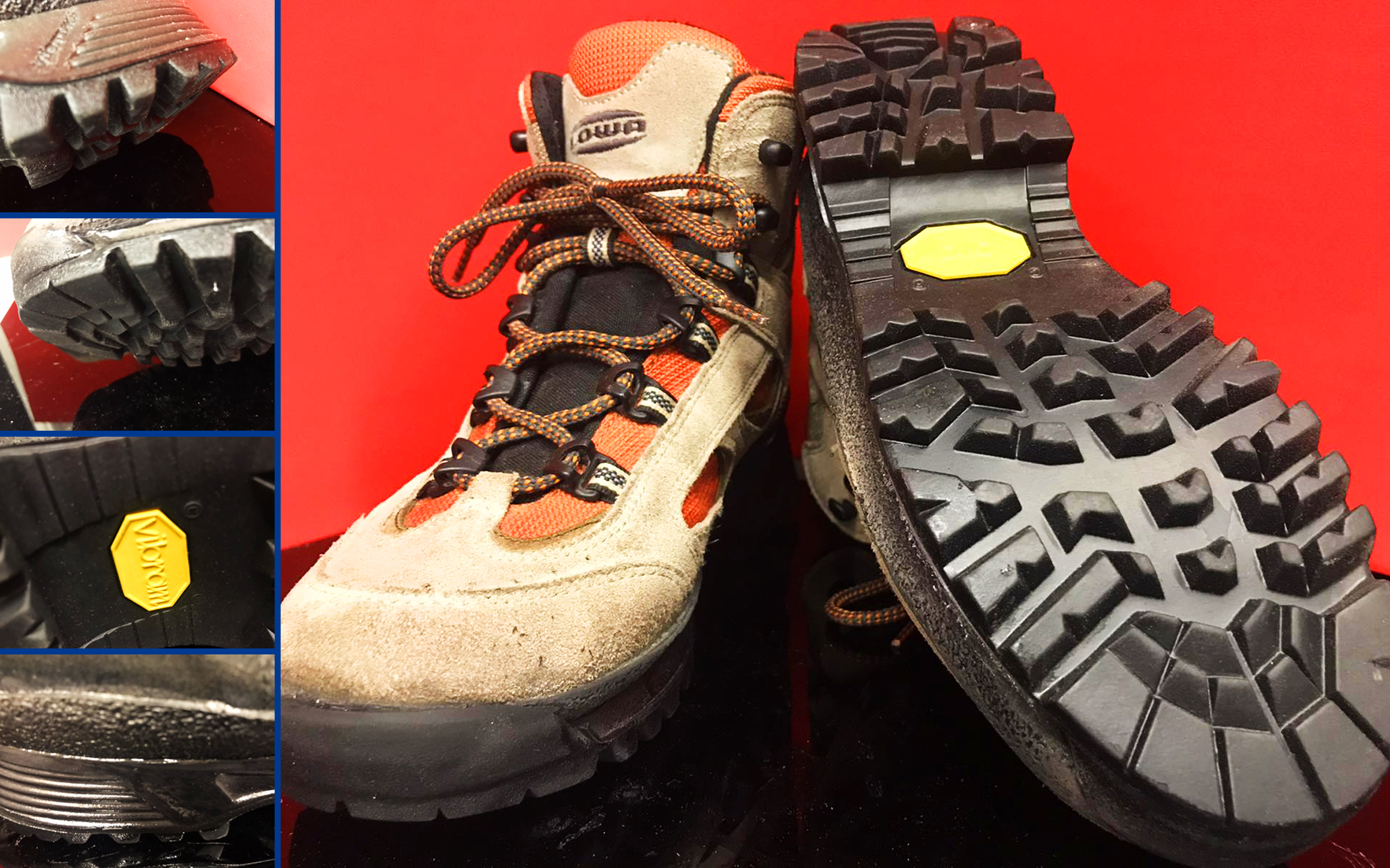 Der richtige Schliff und die richtige Verklebung gewährleistet eine einwandfreie Reparatur Ihrer Bergschuhe, Wanderschuhe und auch Trekkingschuhe.